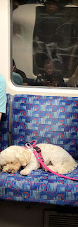 When I got on the tube (underground train), I didn't see anyone else wearing anything with stars on them. I did notice this dog sitting across me and I thought it was such a star. I took a sneaky photo of it.